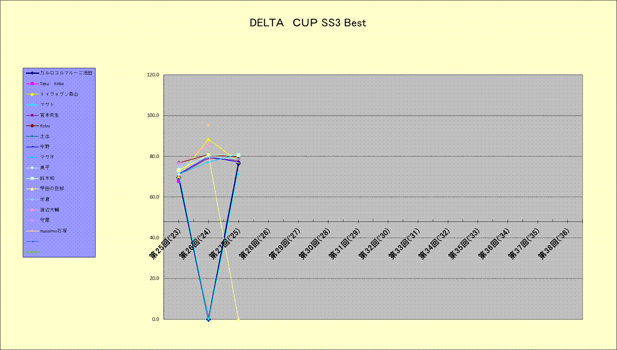 | 宮本先生 | 50.000 | 70.900 | 4 | 71.240 | 79.180 | 3 | 78.120 | 77.920 | 9 | ||||||||||||||||||||||||||||||||||||||||||||||||