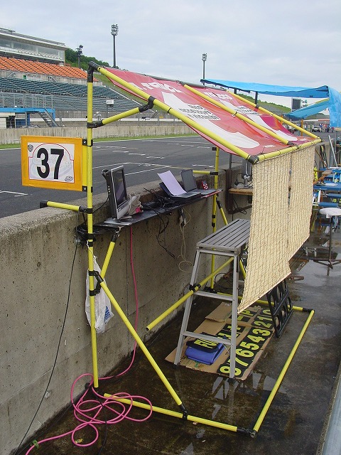 モテギのピットウォールにジャストフ ィットする! 隣の青テント(ルンペン仕様)とは、気合が違うぜ!(爆)